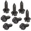 • BLACK LICENSE PLATE SCREW KIT: This set of fasteners includes 8 black license plate screws with a slotted hex-head and 1/4 inch (.25″) diameter and 3/4 inch (.75″) long self tapping shank. They are the perfect set of screws for the front or back license plate and frames of most domestic vehicles.